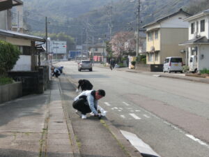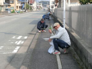 お花見前にはボランティア活動としていつもお世話になっている会社前面道路の清掃をみんなで行いました。
