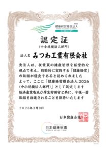 弊社は今年度も「健康経営優良法人2026(中小規模法人)」に認定されました。